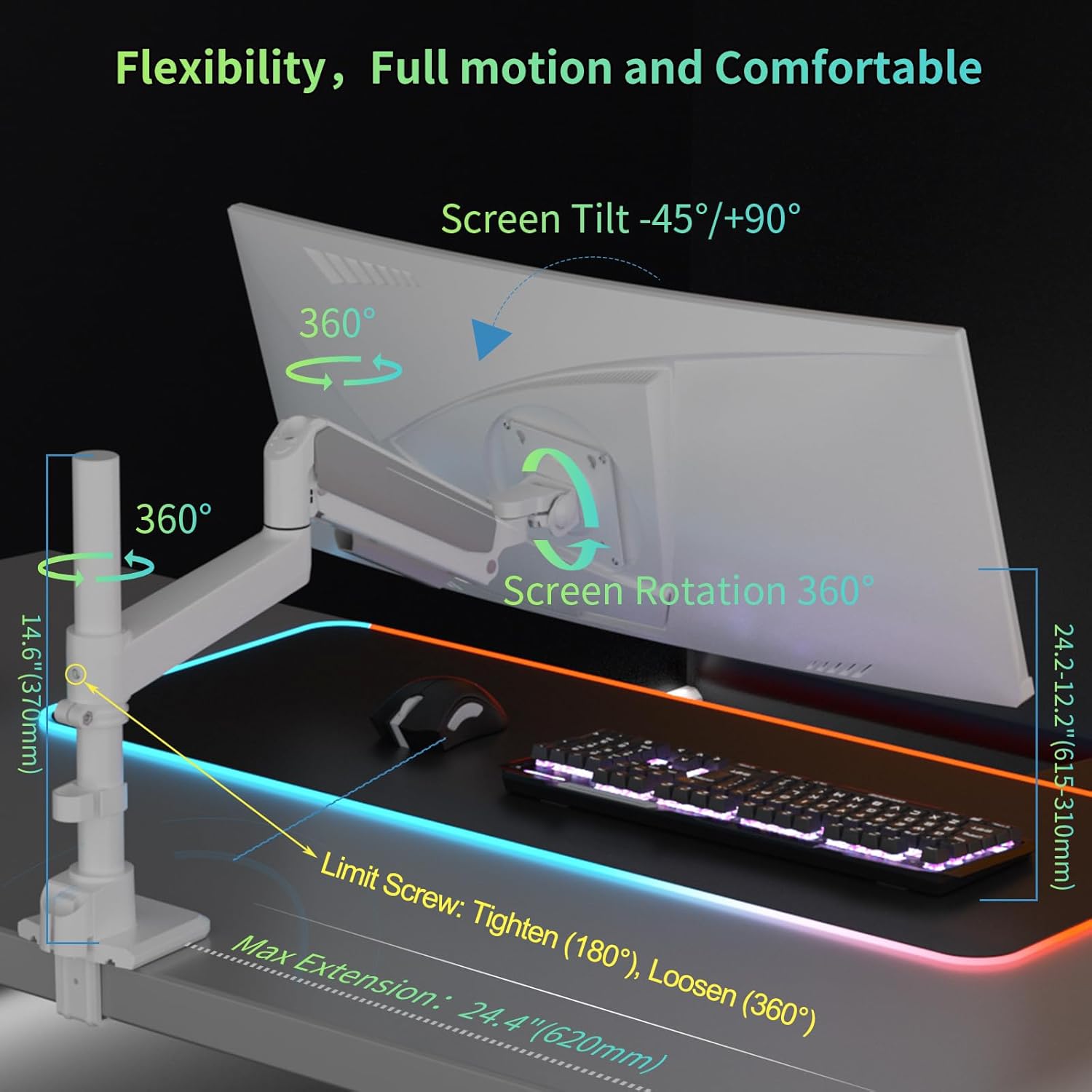 | Movement Type | Rotate,Swivel,Tilt,Leveling,Articulating,Full Motion Monitor Arm |
